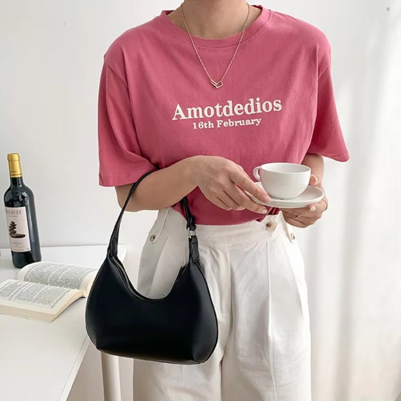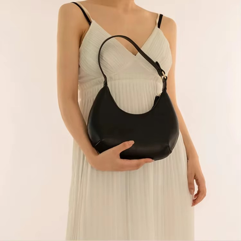 Customized Wholesale New Women's Handbags High-quality Durable Half Moon Shaped Design Fashionable PU Leather Zipper Solid Color